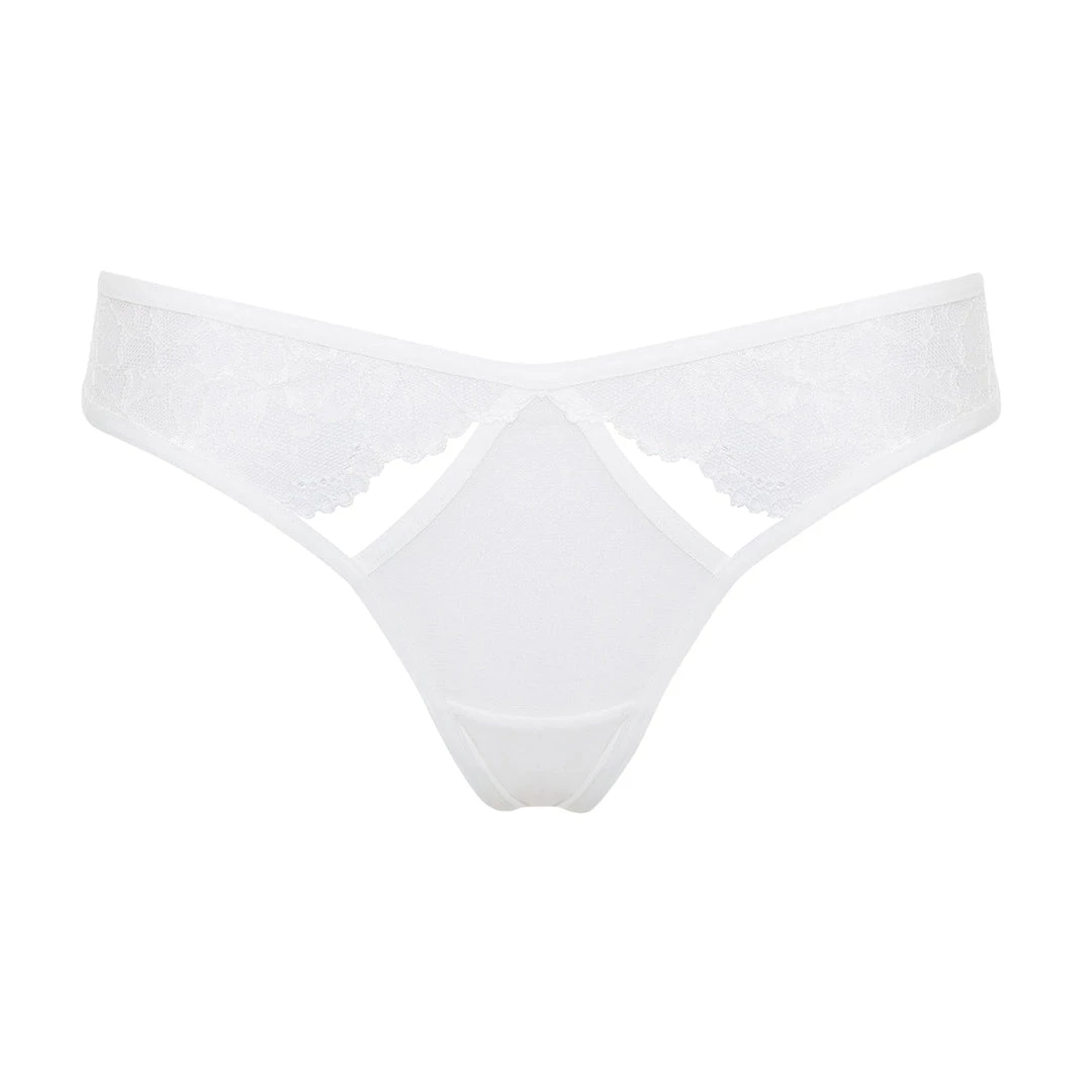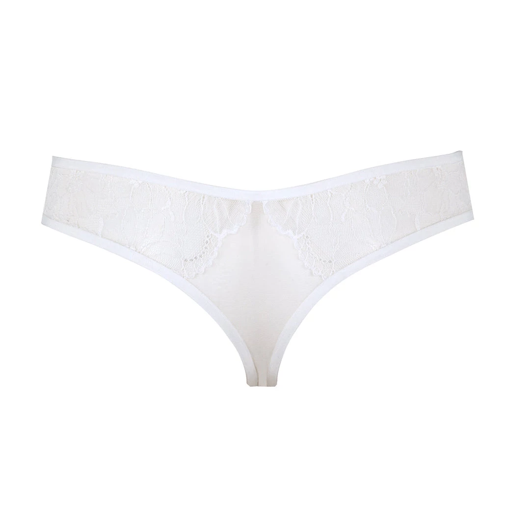 Playful, seductive and flattering, the Emerson white lace thong is a stylishly provocative addition to your lingerie collection. Detailed with intricate lace and mesh, this elegant ivory thong is the perfect option to introduce into your bridal lingerie edit but is sure to become a go-to option on any other day too.