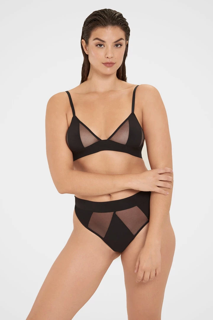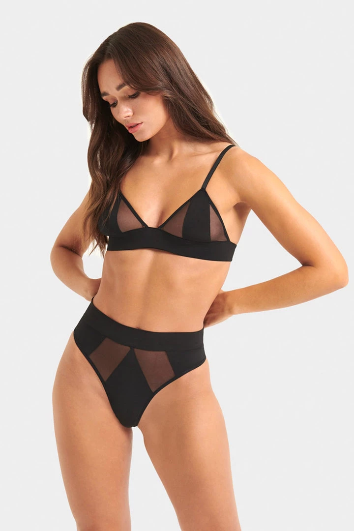 A minimalist’s dream come true, the Orla set entices with its clean, directional lines and comfortable fabrics. Expertly fusing seductive mesh with soft stretch fabric, this contemporary collection is perfect for adding to your everyday underwear drawer. Explore its styling potential wearing the non-wired or underwired bra, and finish off the look with either the high-waist brief or thong to experience the full impact of this cutting-edge set.