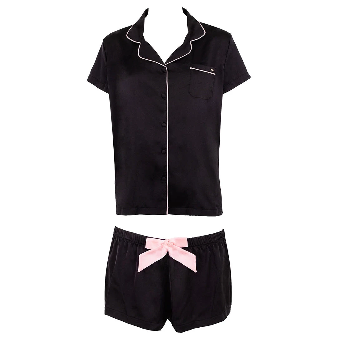 Bluebella – US Abigail Shirt And Short Set Black/Pale Pink Nightwear