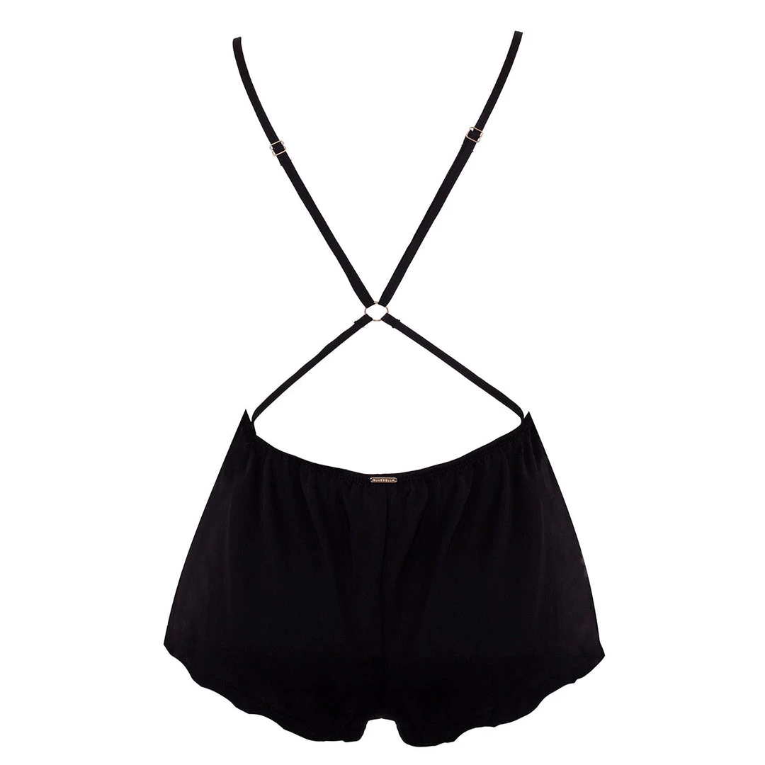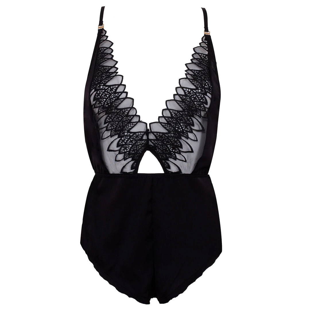 This sleek, chic teddy is here to reinvent your understanding of loungewear. With a plunging neckline embellished with embroidered mesh, Alina looks just as good with your favourite outerwear as she does worn alone.