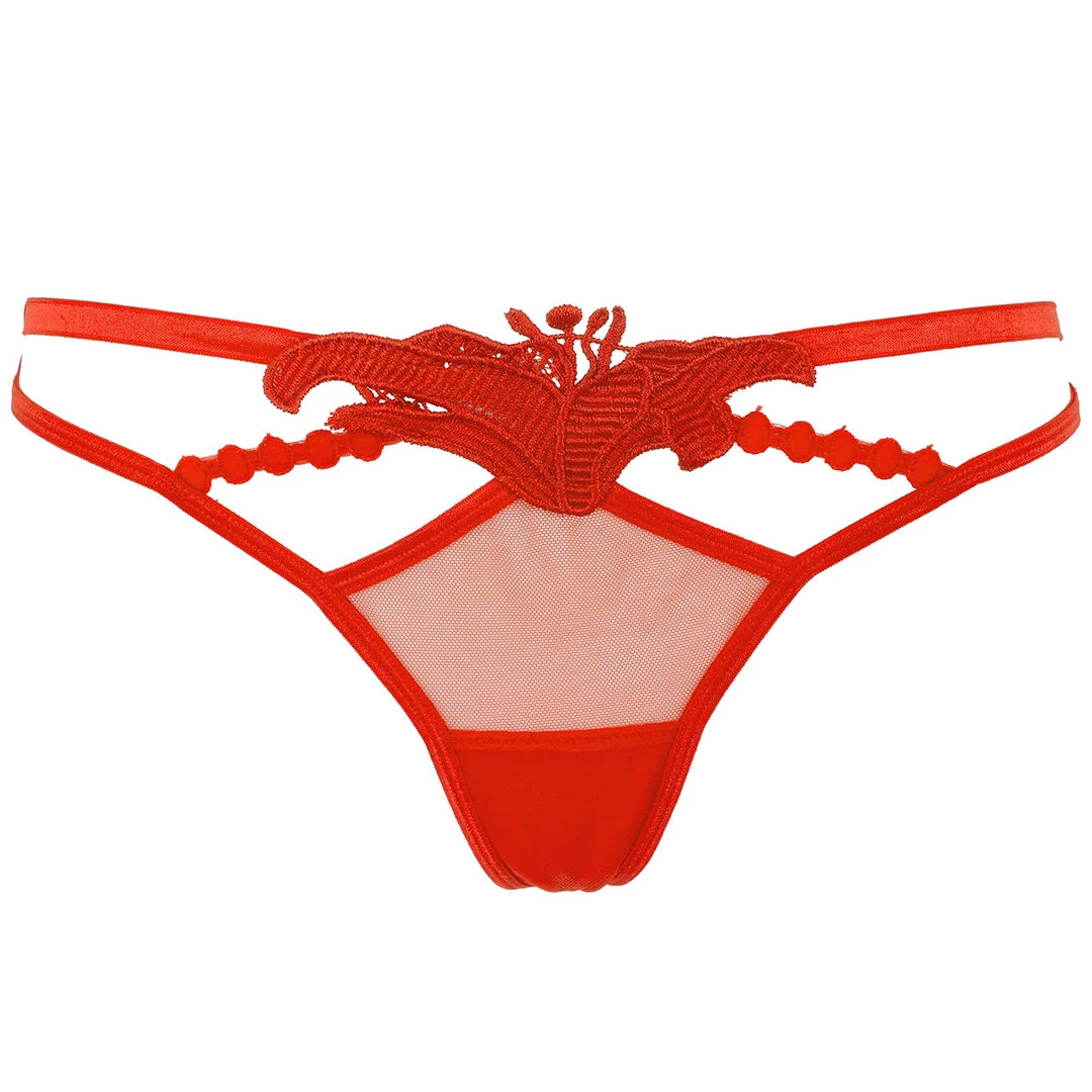 Elegant, chic and now available in a luxe red colorway, every lingerie wardrobe needs an Amina Thong. Superfine mesh is soft against the skin, whilst provocative cut-outs create a sculptural look. Wear with the matching bra.