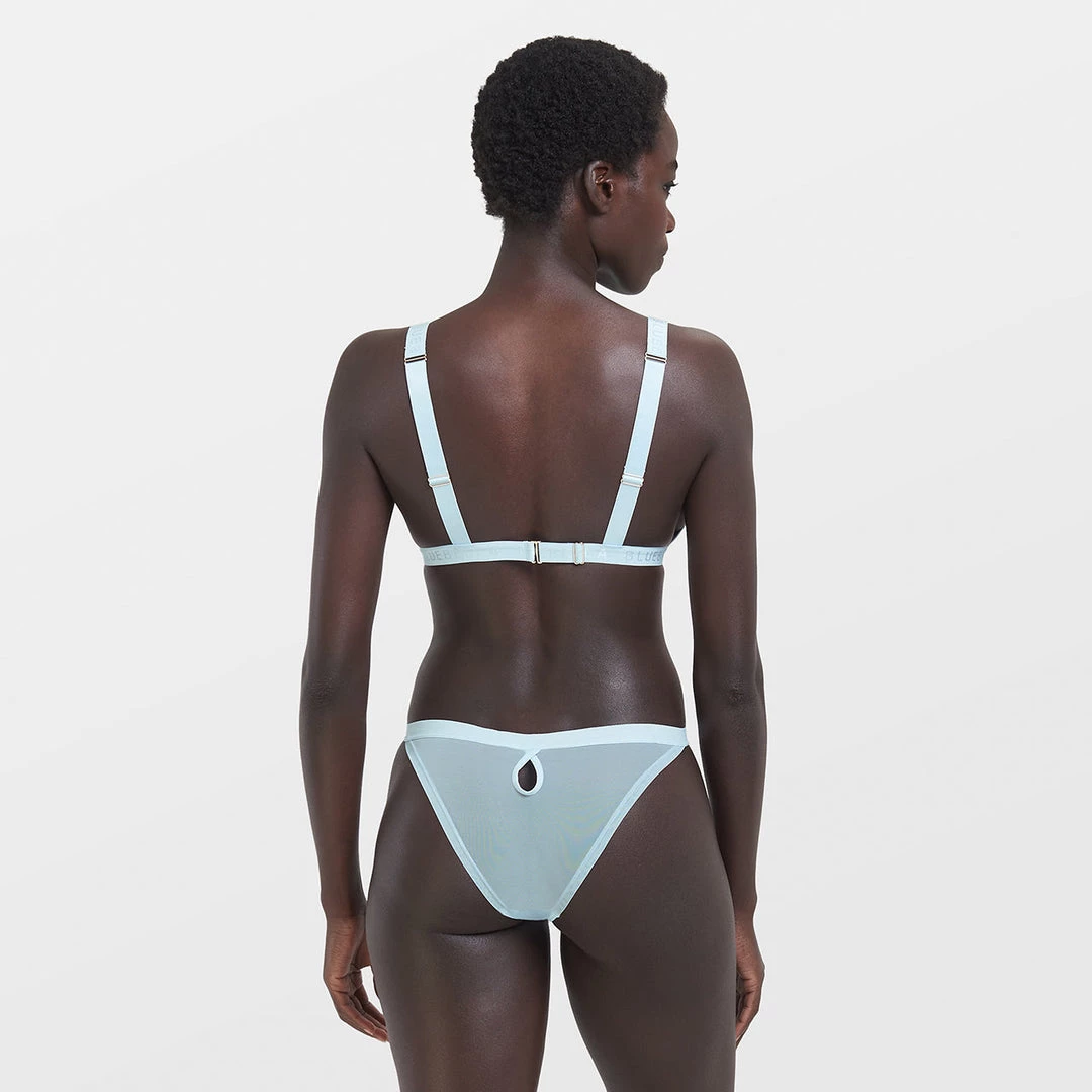 A chic and simple soft cup bra with sports-luxe styling. Wide branded elastic and sheer mesh add a contemporary feel. Wear with other items in the Lilia collection for a modern lingerie look.