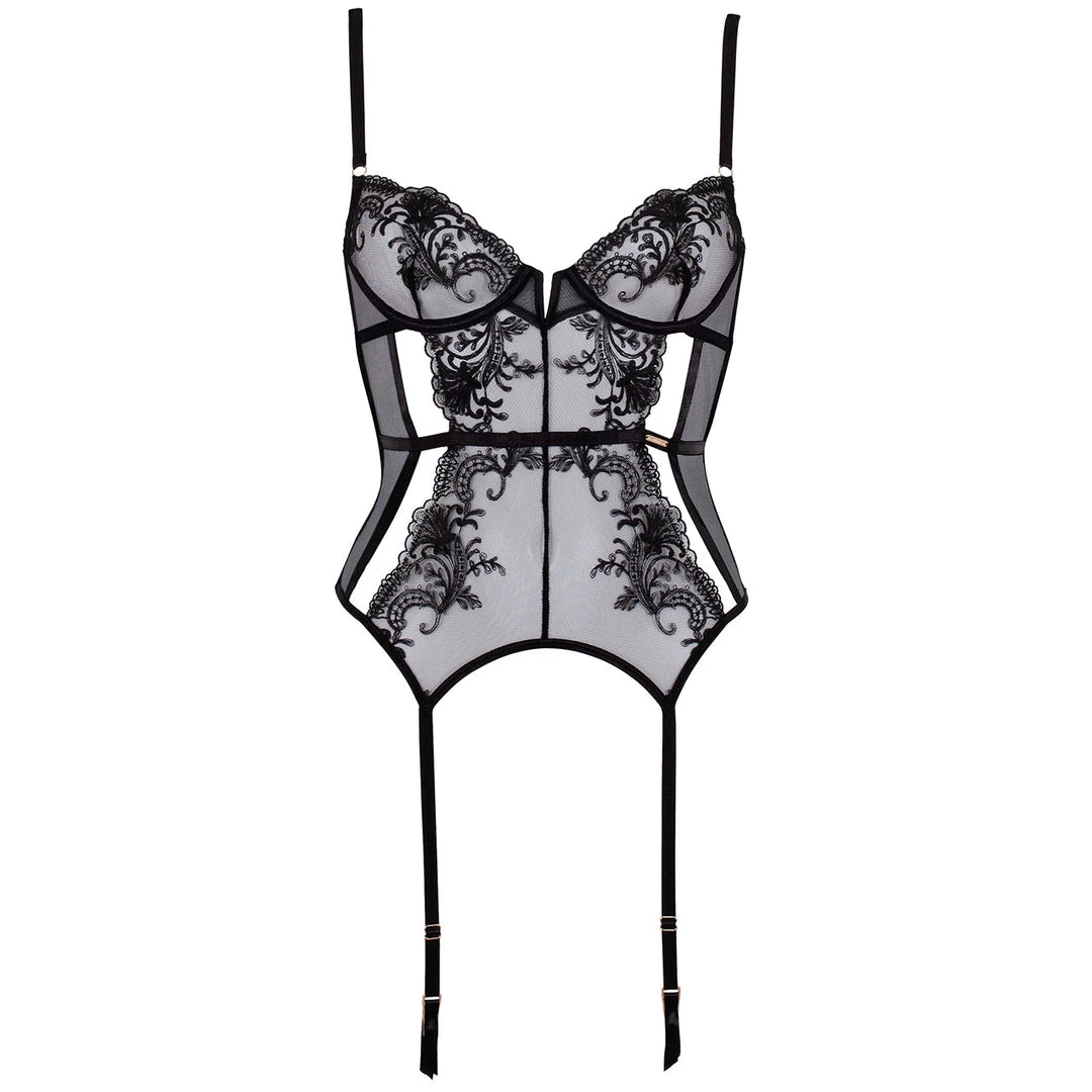 Our bestselling collection gets a beautiful new addition in the shape of this Wired Basque! The iconic Marseille embroidery embellishes panels in both the front and back, whilst cut-outs and superfine mesh add a provocative edge. Add to your Marseille collection today, with this gorgeous and timeless lingerie look.