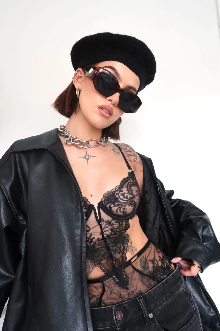Blurring the lines between ready-to-wear and lingerie, the Marseille wired body is designed to be seen – even if it is only within the confines of your bedroom. A fusion of romance with a touch of nostalgia, this exquisite piece draws the eye with its immaculate embroidery that organically follows the shape of your body. Fitted with adjustable shoulder straps, this state-of-the-art piece is a display of audacious femininity in its purest form.