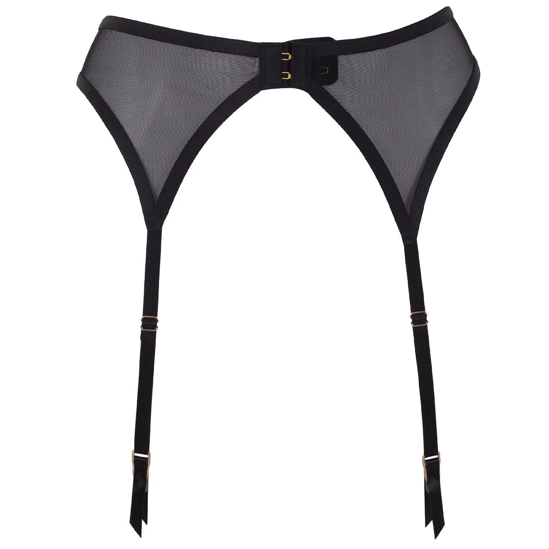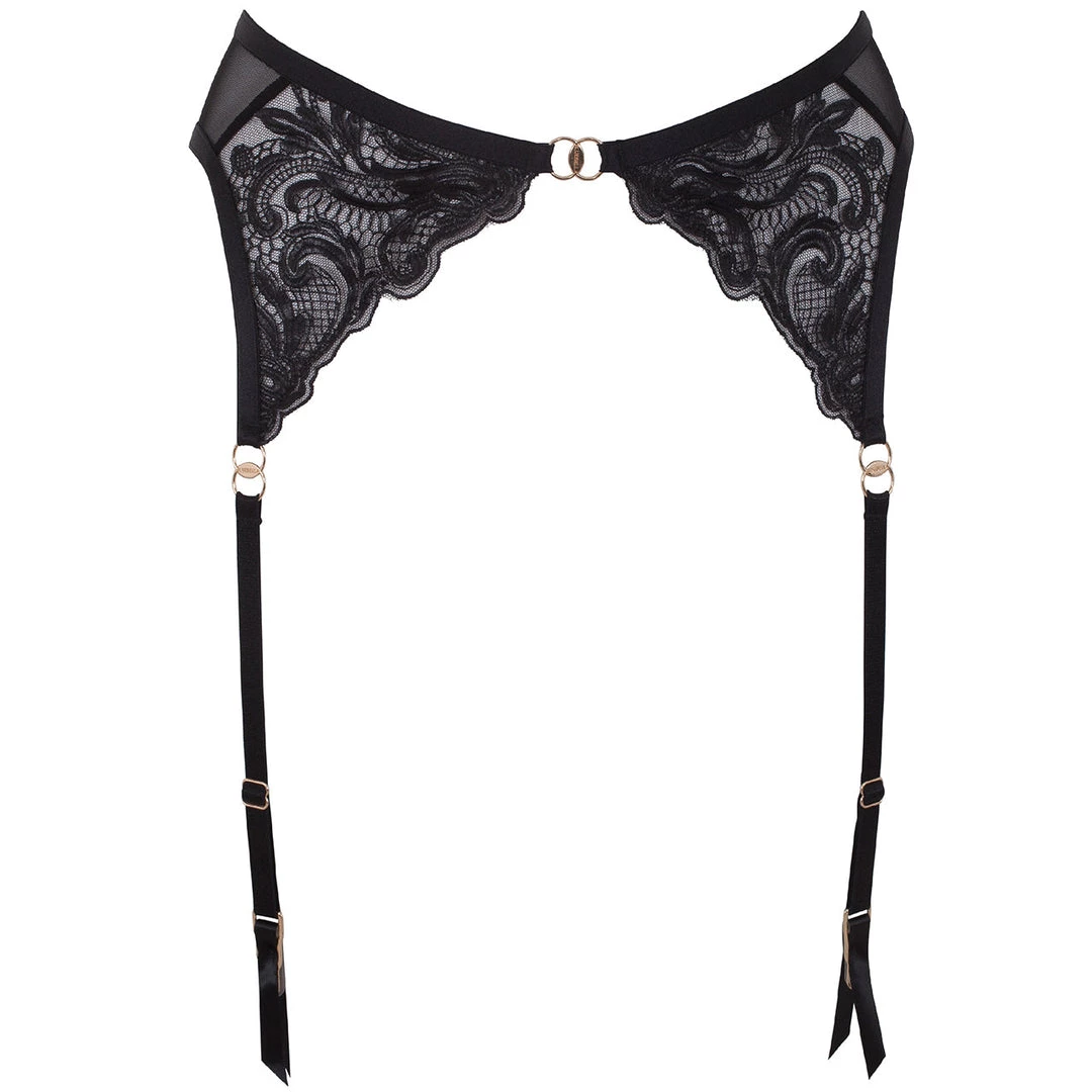 The Nadia suspender is the perfect finishing touch to a daring lingerie ensemble, bridging the gap between sultry and chic. The piece is offset with gold-tone hardware for the final accent of opulence, flattering your figure with an intricate lace design across a soft mesh backdrop. A suspender belt can only truly flourish alongside other pieces, so be sure to check out the corresponding pieces from the collection.