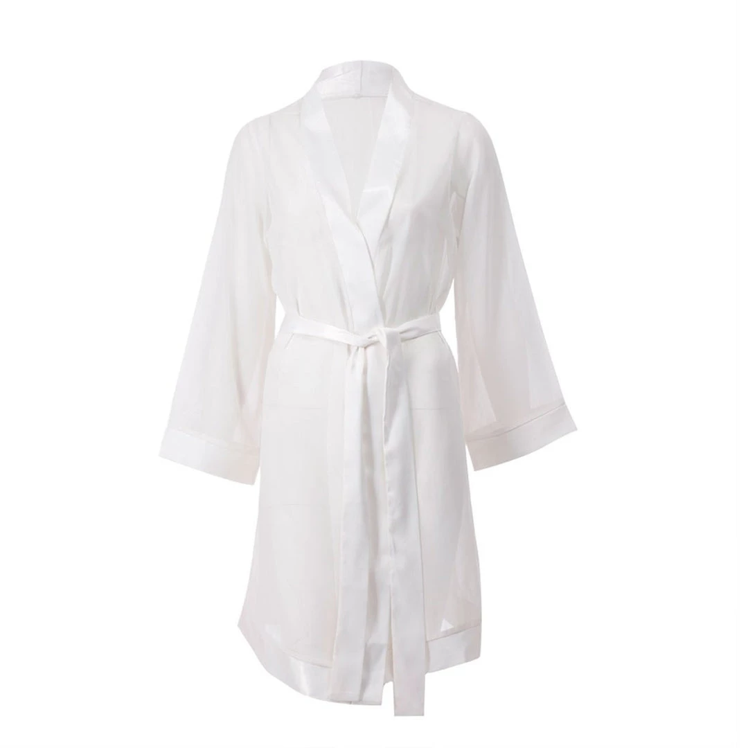 The Bluebella Chiffon Kimono is a must-have item to complete your favourite lingerie looks. Edged with a deep satin trim around the robe and cuffs, the kimono also features a luxurious satin waist tie.