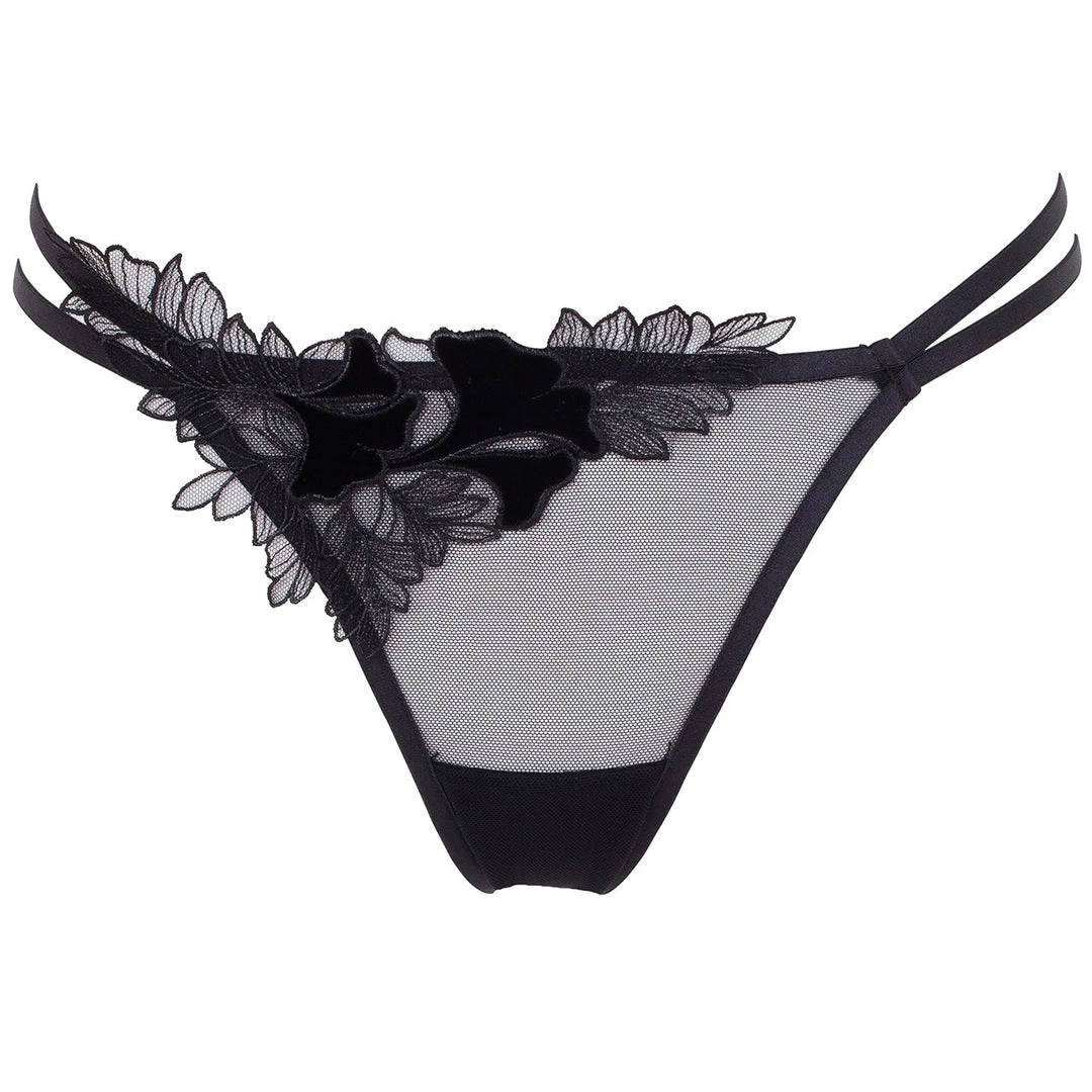 A seductive sheer mesh panty with gorgeous velvet and mesh botanical detailing. Wear with the matching Sabina Bra for a luxurious lingerie look.